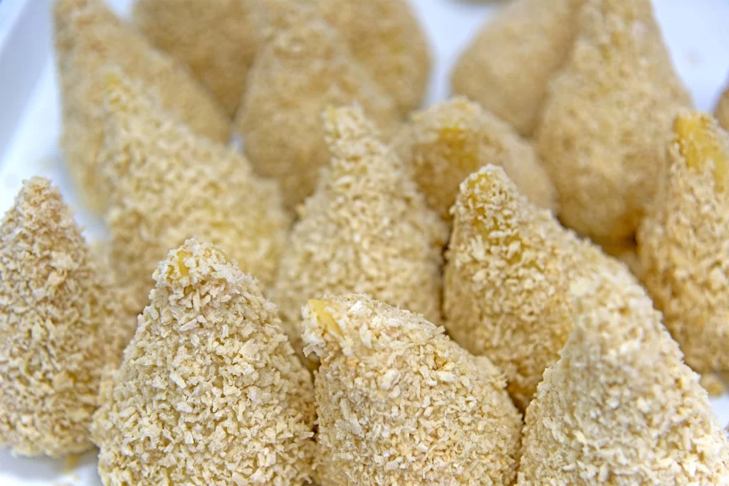 Esta es la etapa más importante, ya que es la capa más externa y establece la crocancia característica y la apariencia del producto. Es decir, el breading es lo que transforma el alimento, creando la corteza característica que combina sabor, textura y atractivo visual.